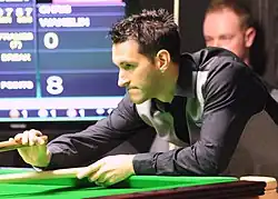 Ford played Brown on 10 November, and the afternoon session ended at 4–4 with both players making a century.[26][27] In the evening session, Brown made a century of 134 in the ninth frame and went on to establish a 6–5 lead. Ford then made three centuries in a row to lead by 8–6, and won the match 9–6 with a break of 57 in the last frame. Ford said: "I don't feel as though I'm going to fall apart this week. It doesn't matter who I play, I feel like I can get in the balls and play as well as anybody." Brown said: "I was disappointed with the way I played to be honest. I don't want to take anything away from Tom. I thought he finished off the match very well. I think I just ran out of gas in the end."[28][29][30]