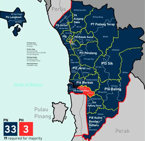 All 36 seats in the Kedah State Legislative Assembly 19 seats needed for a majority | ||||||||||||||||||||||||||||||||||||||||||