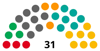 Size of cabinet in each municipality varies depending on populations. Lowest population municipalities with up to 5,000 inhabitants have 15 seats, while largest municipalities with over 500,000 inhabitants have 51 seats.[2]