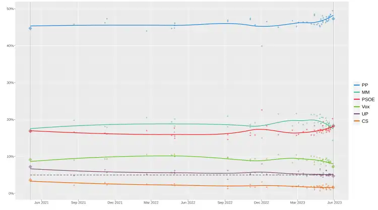 - ^ "ElectoPanel Autonómico (6M)". Electomanía (in Spanish). 6 May 2023.