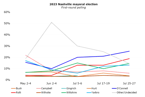 - ^ Rau, Nate (August 4, 2023). "O'Connell finishes first in Nashville mayor's race, will face Rolli in runoff". Axios. Retrieved August 4, 2023.