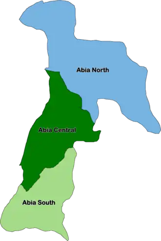 The Abia South district covers Aba North, Aba South, Obi Ngwa, Osisioma Ngwa, Ugwunagbo, Ukwa East, and Ukwa West local government areas. The incumbent is Enyinnaya Abaribe (APGA), who was re-elected with 57.4% of the vote in 2019 as a member of the PDP. In December 2021, Abaribe announced that he would run for governor of Abia State, instead of seeking re-election.[67] However, Abaribe withdrew on the date of the PDP gubernatorial primary in May 2022.[68] The next day, he defected to APGA and was nominated by his new party's senatorial primary.[69]