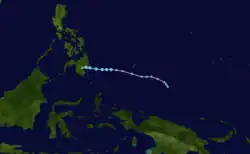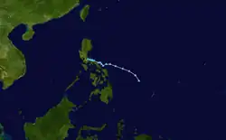 An area of low pressure formed near the Southern Philippines. On September 24, JMA recognized it as a tropical depression as it tracked westward. Around the same day, JTWC designated the system as 13W. It was tracking north-northwestward toward the Vietnam coast. The JMA last tracked the system on September 27.