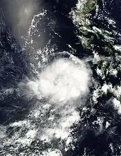 On October 13, a low-pressure area developed to the west of the Philippines. Due to the system being over warm waters and low vertical wind shear, a TCFA was announced on October 16. JTWC designated the said disturbance as 16W. On October 18, JMA formally named the system Tropical Storm Sanba as it continues to consolidate. Sanba later made landfall in Hainan on the following day. It weakened into a tropical depression on October 20.