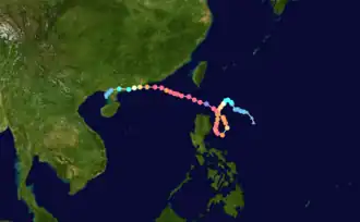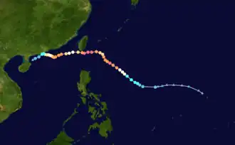 The 2023 Pacific typhoon season was the fourth and final consecutive below-average season and became the third-most inactive typhoon season on record in terms of named storms, with just 17 named storms developing, only ahead of 2010 and 1998, however it was slightly above average in terms of ACE. Despite the season occurring during an El Niño event, which typically favors activity in the basin, activity was abnormally low. This was primarily due to a consistent period of negative PDO, which typically discourages tropical storm formation in this basin.[1] The season was less active than the 2023 Atlantic hurricane season in terms of named storms, the fourth such season on record, after 2005, 2010 and 2020. The season's number of storms also did not exceed that of the 2023 Pacific hurricane season. Only ten became typhoons, with four strengthening further into super typhoons. However, it was very destructive, primarily due to Typhoon Doksuri which devastated the northern Philippines, Taiwan, and China in July, becoming the costliest typhoon on record as well as the costliest typhoon to hit mainland China, and Typhoon Haikui in September, which devastated China, Taiwan, and Hong Kong. The season was less active in Southeast Asia, with no tropical storm making landfall in mainland Vietnam (the third since the country's independence, after the 1976 and 2002 seasons).[2][3]