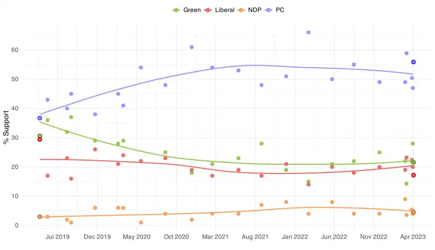 - ^ "King on track for majority win" (PDF). Forum Research. 2 April 2023. Retrieved 2 April 2023.