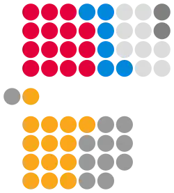 | Party | Seats | Gains | Losses | Net gain/loss | Seats % | Votes % | Votes | +/− | |