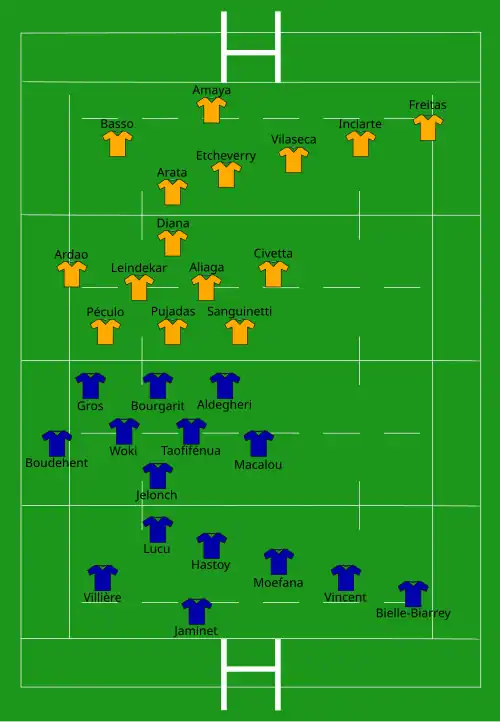 | Try: Hastoy 10' c Mauvaka 55' c Bielle-Biarrey 74' c Con: Jaminet (3/3) 11', 56', 75' Pen: Jaminet (2/3) 3', 14' | Report | Try: Freitas 6' m Amaya 53' c Con: Etcheverry (1/2) 54' |