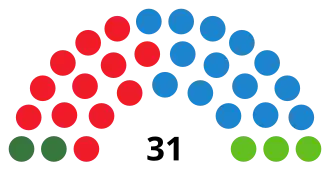 The City Council of Seville (Spanish: Ayuntamiento de Sevilla) was the top-tier administrative and governing body of the municipality of Seville, composed of the mayor, the government council and the elected plenary assembly.[1] Elections to the local councils in Spain were fixed for the fourth Sunday of May every four years.[2] Voting for the local assembly was on the basis of universal suffrage, which comprised all nationals over 18 years of age, registered and residing in the municipality of Seville and in full enjoyment of their political rights, as well as resident non-national European citizens and those whose country of origin allowed Spanish nationals to vote in their own elections by virtue of a treaty.