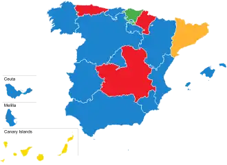 The following table lists party control in autonomous communities and cities. Gains for a party are highlighted in that party's colour.