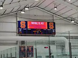 Syracuse vs. Pitt football advert at the Tennity Ice Skating Pavilion , Syracuse University.