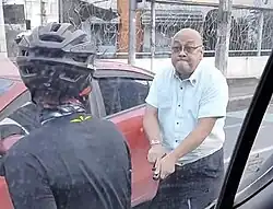 On the late afternoon of August 8, 2023, a road rage incident occurred when former Philippine National Police (PNP) officer Wilfredo Gonzales, driving a red Kia Rio, cut off Allan Bandiola, who was riding his bicycle in the bicycle lane near Welcome Rotonda in Doña Josefa, Quezon City, Philippines.[2] Following the altercation, Gonzales exited his car, threatened to shoot the cyclist with a handgun, and slapped him on the head.[3] On the same day, a settlement was reached between both parties, with Bandiola paying ₱500 to Gonzales for damages to his car.[4]