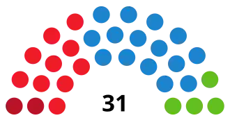 The City Council of Zaragoza (Spanish: Ayuntamiento de Zaragoza) was the top-tier administrative and governing body of the municipality of Zaragoza, composed of the mayor, the government council and the elected plenary assembly.[1] Elections to the local councils in Spain were fixed for the fourth Sunday of May every four years.[2] Voting for the local assembly was on the basis of universal suffrage, which comprised all nationals over 18 years of age, registered and residing in the municipality of Zaragoza and in full enjoyment of their political rights, as well as resident non-national European citizens and those whose country of origin allowed Spanish nationals to vote in their own elections by virtue of a treaty.