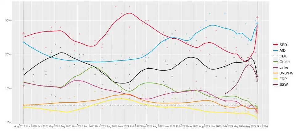 SPD | AfD | CDU | Grüne | Linke | BVB/FW | FDP | BSW | Others | Lead |