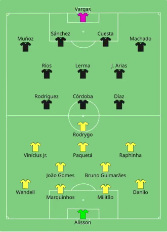 The two teams had faced each other in 36 previous matches,[36][37] including 11 times in the Copa América with Brazil dominating with eight matches won to just two wins for Colombia plus one draw.[38][39] Their most recent meeting was a 2–1 home win for Colombia in the 2026 FIFA World Cup qualification in November 2023.[40]