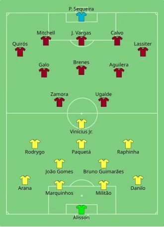 The two teams had met 11 times previously with Brazil dominating with 10 wins to just one victory for Costa Rica.[17] Two of those Brazilians wins came in Copa America group stage matches: 5–0 in 1997 and 4–1 in 2004.[18][19] Their last meeting had been in the 2018 FIFA World Cup with Brazil claiming a 2–0 group stage victory.[20]