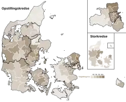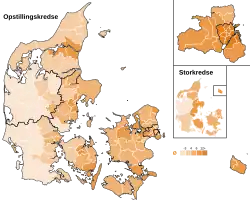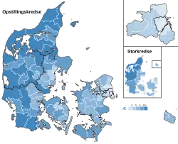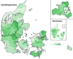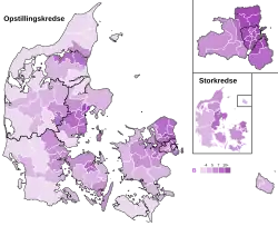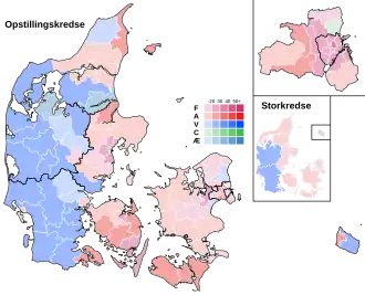 The election used the 92 Folketing nomination districts for administrative and statistical purposes, but they had no impact on the distribution of seats as Denmark forms a single nationwide constituency for European Parliament elections.[18]