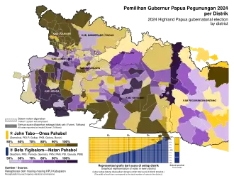 The 2024 Highland Papua gubernatorial election was held on 27 November 2024 as part of nationwide local elections to elect the governor of Highland Papua for a five-year term. It was the first gubernatorial for the province since its formation in 2022.[1] The election was won by Mamberamo Raya Regent John Tabo of Golkar with 56% of the vote. His sole opponent, Befa Yigibalom, received 43%.