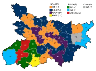 Bihar, along with Uttar Pradesh and West Bengal , were the only states where the 2024 Indian general election was held in all 7 phases.[ 4]