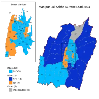 - ^ "Manipur Lok Sabha polls 2024: Total seats, schedule, candidates list, date of voting, result, main parties". The Times of India. 8 April 2024.