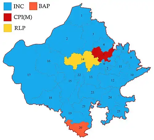 Partywise Result Map of the 2024 general election in Rajasthan