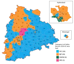 - ^ The Hindu (4 June 2024). "Telangana Election Results 2024 Highlights: BJP, Congress win 8 seats each; MIM bags 1". Archived from the original on 4 June 2024. Retrieved 4 June 2024.