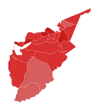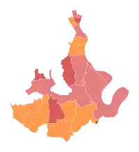 In the 2020 presidential election, Republican Donald Trump won 81 of 100 districts, while Democratic candidate Joe Biden won 19.
