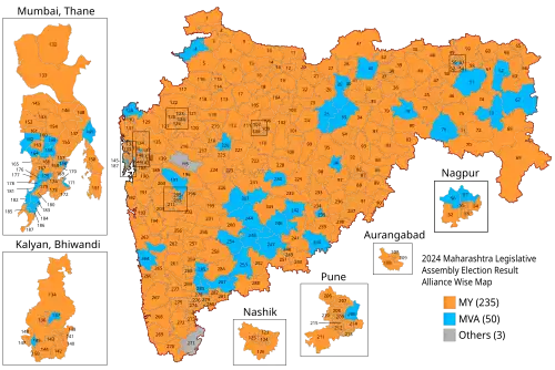 - ^ "'Development wins! Good governance wins': PM Modi on Mahayuti's landslide victory in Maharashtra". The Indian Express. 23 November 2024. Retrieved 10 December 2024.
