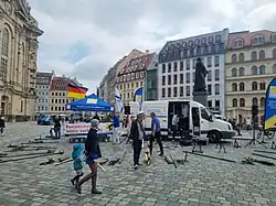 On 7 June, one week after the attack, the Baden-Württemberg state chapter of the Alternative for Germany (AfD) wanted to organize a memorial rally on the site of the attack.[64] Despite several other events having been held there since the attack, this was denied by the city, which claimed that from 4 until 16 June, only individual mourning was allowed there, as declared on a sign.[65] After an appeal, a higher court upheld the ban.[66] The AfD had to move to a different square, Paradeplatz.[67]