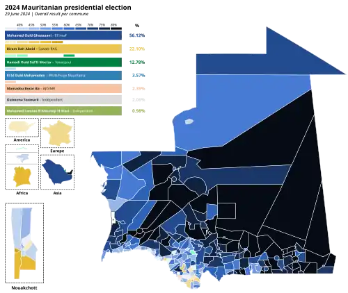 - ^ "Mauritania's President Mohamed Ould Ghazouani on track for reelection, provisional results show". Associated Press. 30 June 2024. Retrieved 30 June 2024.