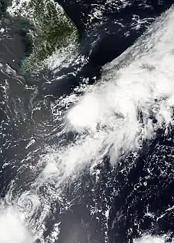 While Yagi was still on its way to making landfall in the Philippines, JTWC announced another formation of a tropical disturbance in the open Pacific Ocean on September 2. JMA also started issuing advisories, and it was recognized as a tropical depression in the same location. Two days later, as JTWC also upgraded it into a tropical depression, it received its designation, 13W. The day after, JMA reported that 13W developed into a tropical storm, giving it the name Leepi as the twelfth named storm of this season. Leepi then accelerated northeastwards before it became an extratropical cyclone on September 6.