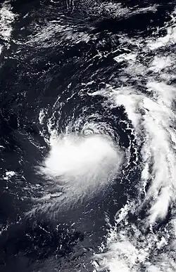 On October 5, a tropical depression formed near Guam. The following day, the JTWC designated it as 21W. Despite moving through warm waters, high wind shear hindered any further development, causing it to weaken back into a disturbance. On October 8, the JTWC issued its final warning, with dissipation expected in the next 12 hours. The next day, 21W intensified into a tropical storm, receiving the name Barijat from the JMA. Later in the day, JTWC reissued advisories on Barijat and strengthened into a tropical storm. However, both agencies later made their final warning for the last time as the storm dissipated on October 11.