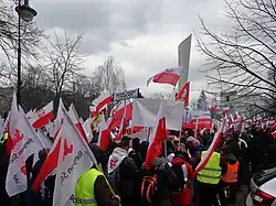 The 2024 Polish farmer protests were a series of protests and road blockades which occurred in early 2024 when Rural Solidarity, the largest farmers' union in Poland, called a strike to protest against the European Green Deal and continued grain imports from Ukraine.[1]