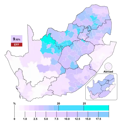 The EFF shares a similar stance to that of the ANC. In their manifesto, the EFF outlines seven pillars on which they are basing their policies. The first is explicitly in favor of expropriation, reading "expropriation of South Africa's land without compensation for equal redistribution in use."[75] On the issue of expropriation, the EFF and ANC are mostly unified. Julius Malema, leader of the EFF, asserted that "when we say economic freedom, we mean Black people own productive farms."[76]