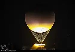 The Parade of Nations took place on the Champs-Élysées starting at the Rond-point des Champs-Élysées, and ending at Place de la Concorde.[2] The final leg culminated with multiple torch bearers coming together, who then lit the Paralympic cauldron, a ring of 40 computerised LEDs and 200 high-pressure water aerosol spray dispensers which was topped by a 30-metre-tall helium sphere resembling a hot air balloon, rising in the air, reminiscent of the Montgolfier brothers' experiments leading to the first hot air balloon flight in 1783. Performers included French singer Christine and the Queens.