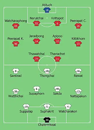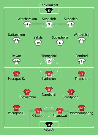 | 7 | Nakhon Sawan | 6 | 0 | 3 | 3 | 2 | 8 | −6 | 3 |