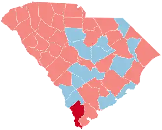 South Carolina handed Republican Donald Trump a comfortable victory, doing so by a margin of 455,295 votes. Notably, Trump improved his margins in every county and gained significant support across all demographics, performing better in suburban, rural, and urban areas. He flipped Jasper County in the southwest of the state, becoming the first Republican to win it since Richard Nixon in 1972.[41]