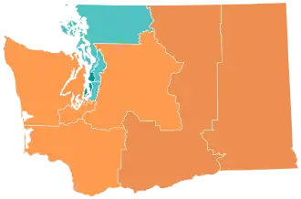 All of Washington's seats in the United States House of Representatives were up for re-election. Incumbent Representatives Derek Kilmer (D) from the 6th district and Cathy McMorris Rodgers (R) from the 5th district announced they would not seek re-election.[6][7]
