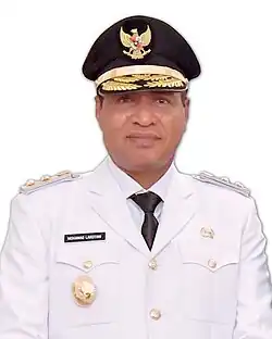 Former Governor Dominggus Mandacan of NasDem was the only candidate to contest the West Papua governorship in this election.[6][7] His running mate was former Vice Governor Mohamad Lakotani of Gerindra.[8] Mandacan and Lakotani were nominated by a coalition of 17 parties. Although the KPU extended the registration deadline from 29 August to 4 September, no other individuals entered the gubernatorial race.[6] Wahidin Puarada, a former regent of Fakfak, announced his intention to contest the election but ultimately did not run.[9][6]