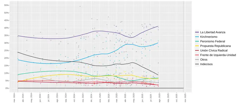 - ^ "Encuesta: con el PRO y la UCR adentro. La Libertad Avanza le saca ocho puntos al peronismo". letrap (in Spanish). 30 December 2024.