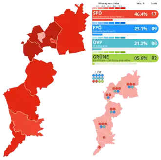 | Freedom Party of Austria (FPÖ) | 45,110 | 23.09 | +13.30 | 9 | +5 | ||