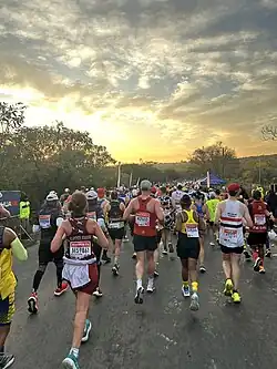 ![]() Runners about an hour after the 2025 Comrades Marathon's Group 2 start, roughly 10km from the start in Pietermaritzburg. | |