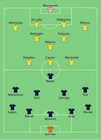 - ^ a b c "Tactical Line-up: Auckland City FC v. CA Boca Juniors" (PDF). FIFA.com. Fédération Internationale de Football Association. June 24, 2025. Retrieved June 24, 2025.