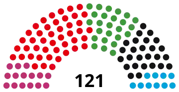 If a party receiving less than 5% of the vote wins one or more constituency seats, the size of the legislature is increased beyond 121 members. A further seat is added if necessary, to ensure that the total number of members is odd.[3]