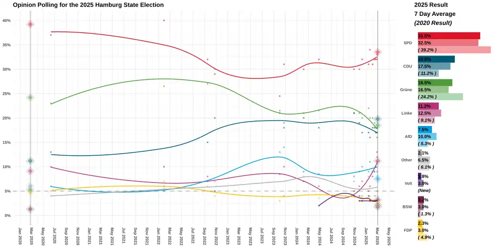 - ^ a b c "Social Democrats lead Hamburg state election: projection – DW – 03/02/2025". dw.com. Retrieved 2 March 2025.
