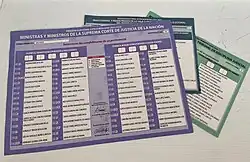 - ^ Espinosa, Joshua (6 May 2025). "¿Cuántas boletas me van a entregar el día de la Elección al Poder Judicial y qué significa cada color?". infobae (in Spanish). Retrieved 18 May 2025.