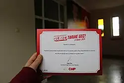 - ^ "Gül Çiftci, Ön Seçim Takvimini Açıkladı: "21 Şubat, Başvurular İçin Son Gün; 24 Şubat'ta Ön Seçimde Kullanılacak Oy Pusulalarının Basımına Başlanacak"". chp.org.tr (in Turkish). Retrieved 2025-02-18.