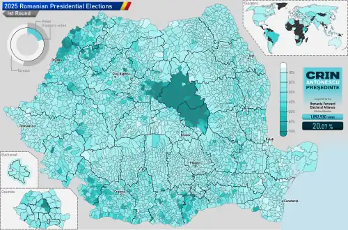 - ^ "Rezultate alegeri prezidențiale 2025". Autoritatea Electorală Permanentă (in Romanian). Retrieved 9 June 2025.