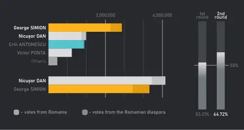 - ^ "Legea nr. 370/2004 pentru alegerea Preşedintelui României – Art. 44, (4)" [Law nr. 370/2004 for the election of the President of Romania – Art. 44, (4)] (PDF). Autoritatea Electorală Permanentă (Permanent Electoral Authority) (in Romanian).