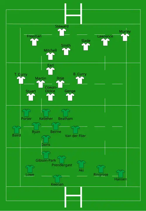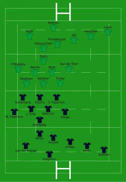 | Try: Gibson-Park 34' m Aki 51' m Beirne 63' c Sheehan 71' c Con: Crowley (2/2) 64', 72' Pen: S. Prendergast (1/1) 55' | Report | Try: Murley 8' c T. Curry 75' m Freeman 80+1' c Con: M. Smith (2/3) 9', 80+1' Pen: M. Smith (1/1) 40' |